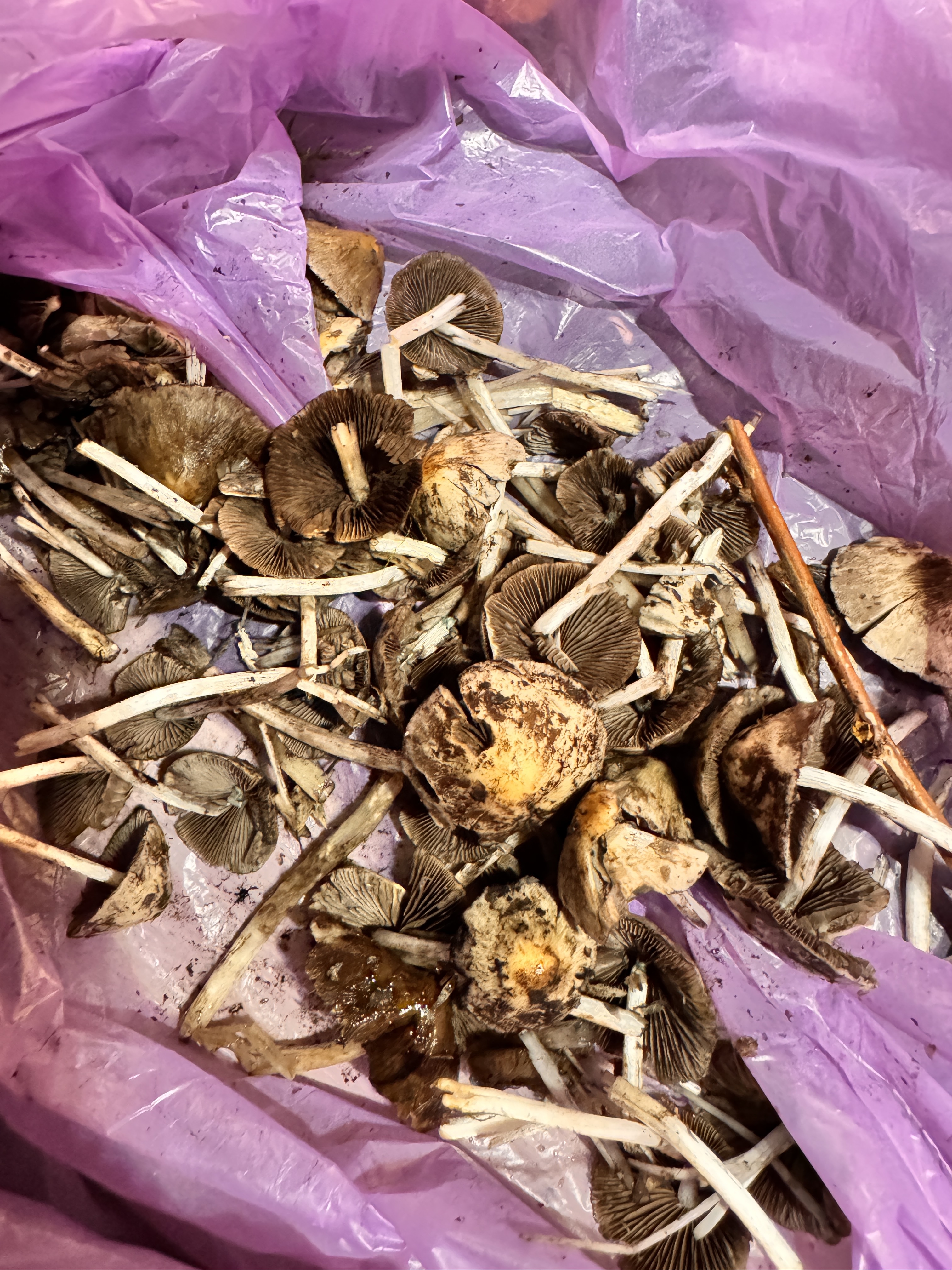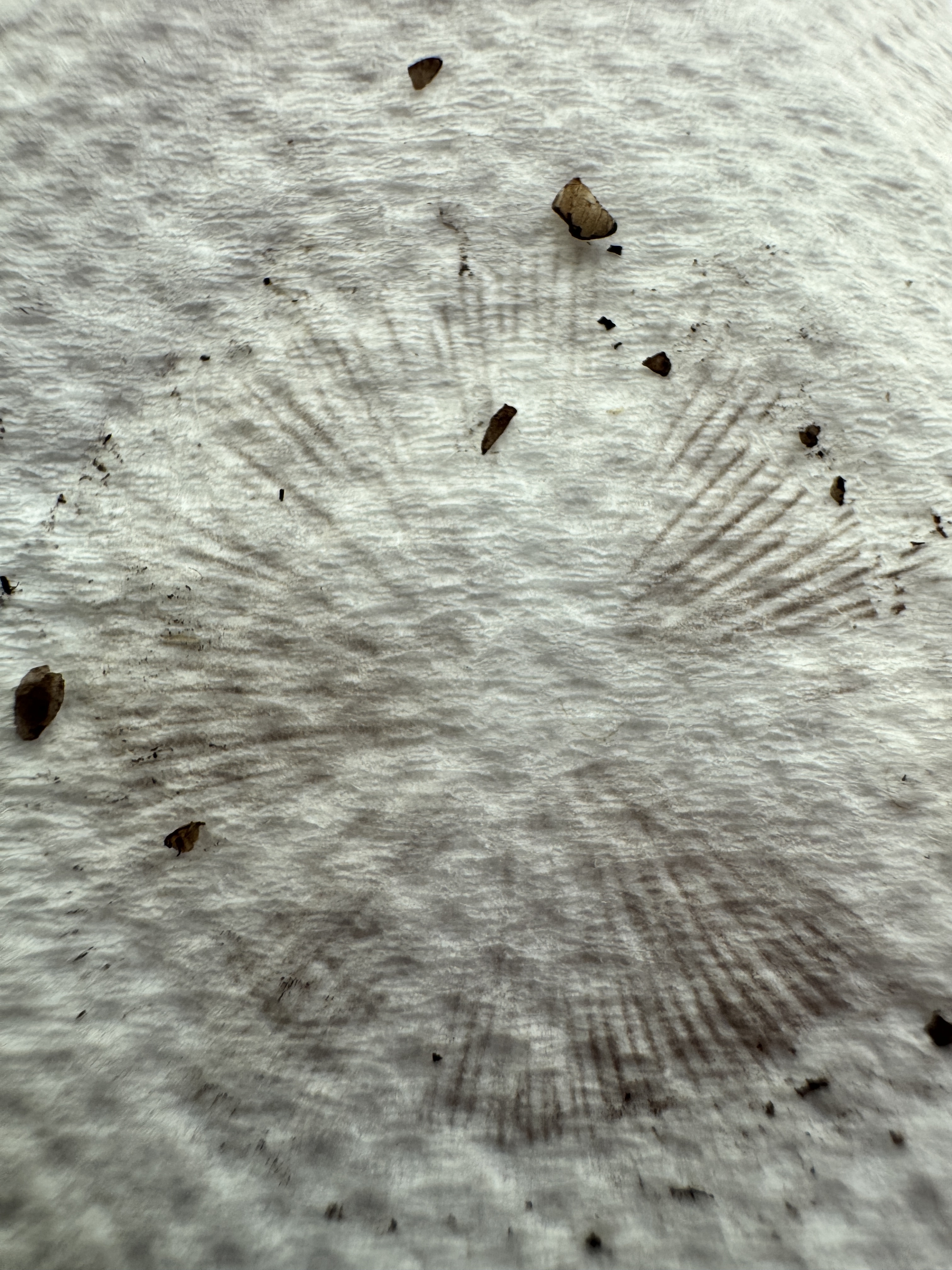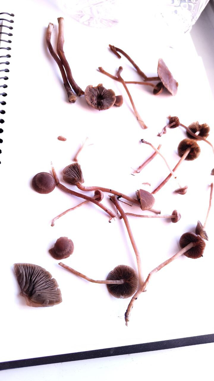 Printtikuvissa mustalla sharpiellä piirretty piste keskellä eli aika mustalta näyttää. Suurin osa aika nuhjuisia ja huonokuntoisia sieniä, mutta paljon eri ikäisiä ja kokoisia sieniä samalla alle neliömetrin alueella. Isoimmissa ruskeissa ja mädissä yksilöissä oli lakki jopa ~3cm leveä, viimeisessä kuvassa.