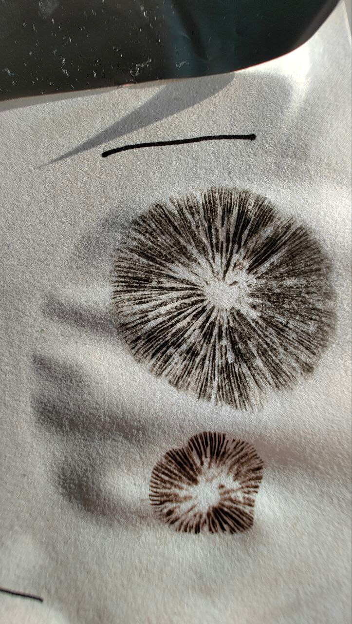 @TapsaM printtikuvasta ei ole juuri riemua, anna lakin olla tiputtelemassa itiöitä ihan rauhassa niin, että tulee oikeasti laskeuma. Toka kuva on huonosti tarkennettu, eikä muutenkaan auta lajintunnistuksessa. Kolmannessa kuvassa on jokin mustesieni ja vikan kuvan ripulista ei ota mitään selkoa.