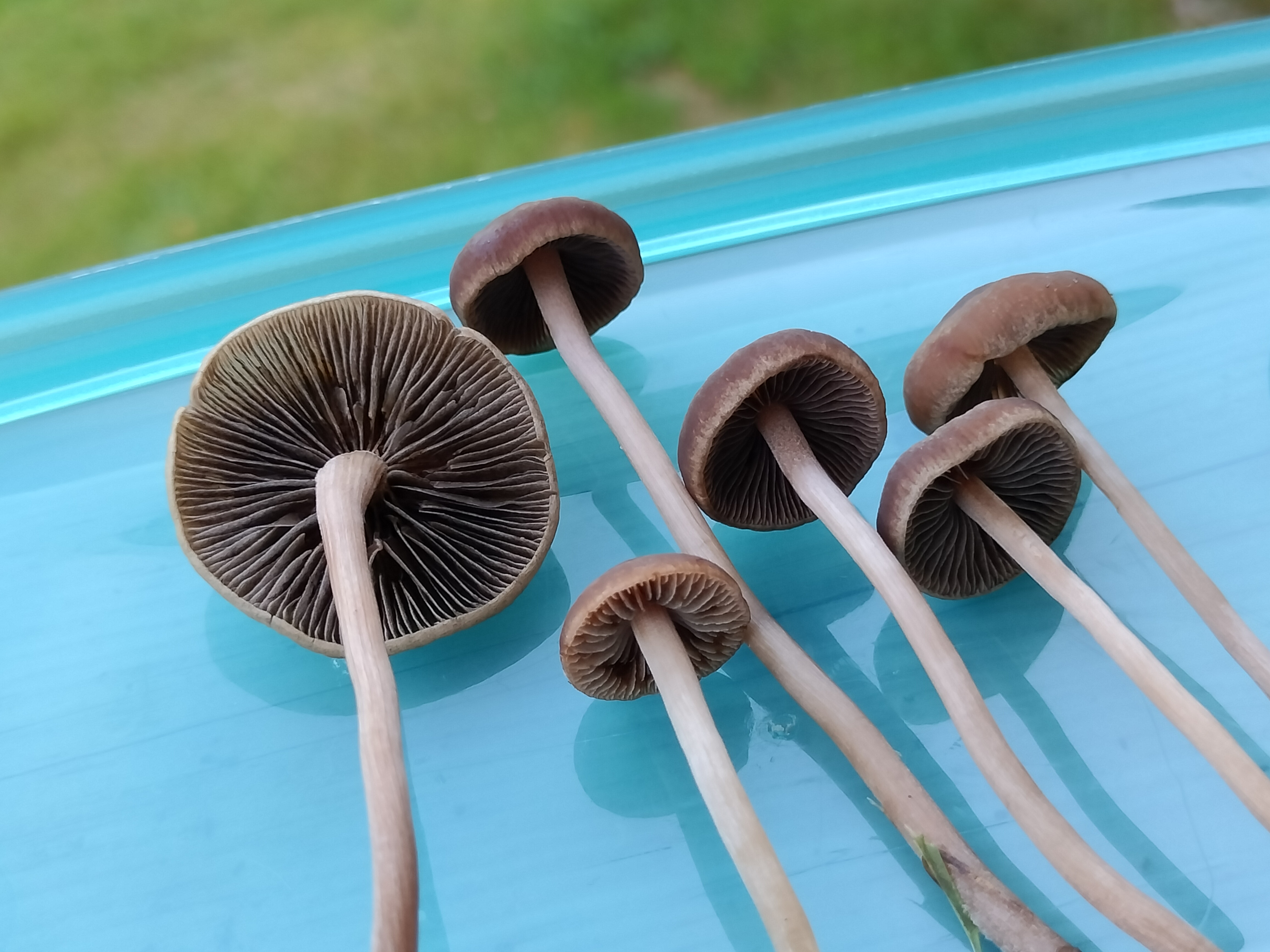Tosin näyttivät kasvavan nimenomaan mudan seassa olevissa kuolleissa heinän/kaislan korsissa, minkä metsäkone myllertänyt viereisen ojan reunoilta ylös, eikä puujätteellä kuten ymmärtääkseni lahokat usein tekevät. No, pitää joku päivä kaivella mikroskooppia esiin ihan huvin ja urheilun vuoksi jos sais selvää, panaeolus ja hypholomien itiöt pitäis kyllä vissiin pystyä erottamaan toisistaan aika helposti.