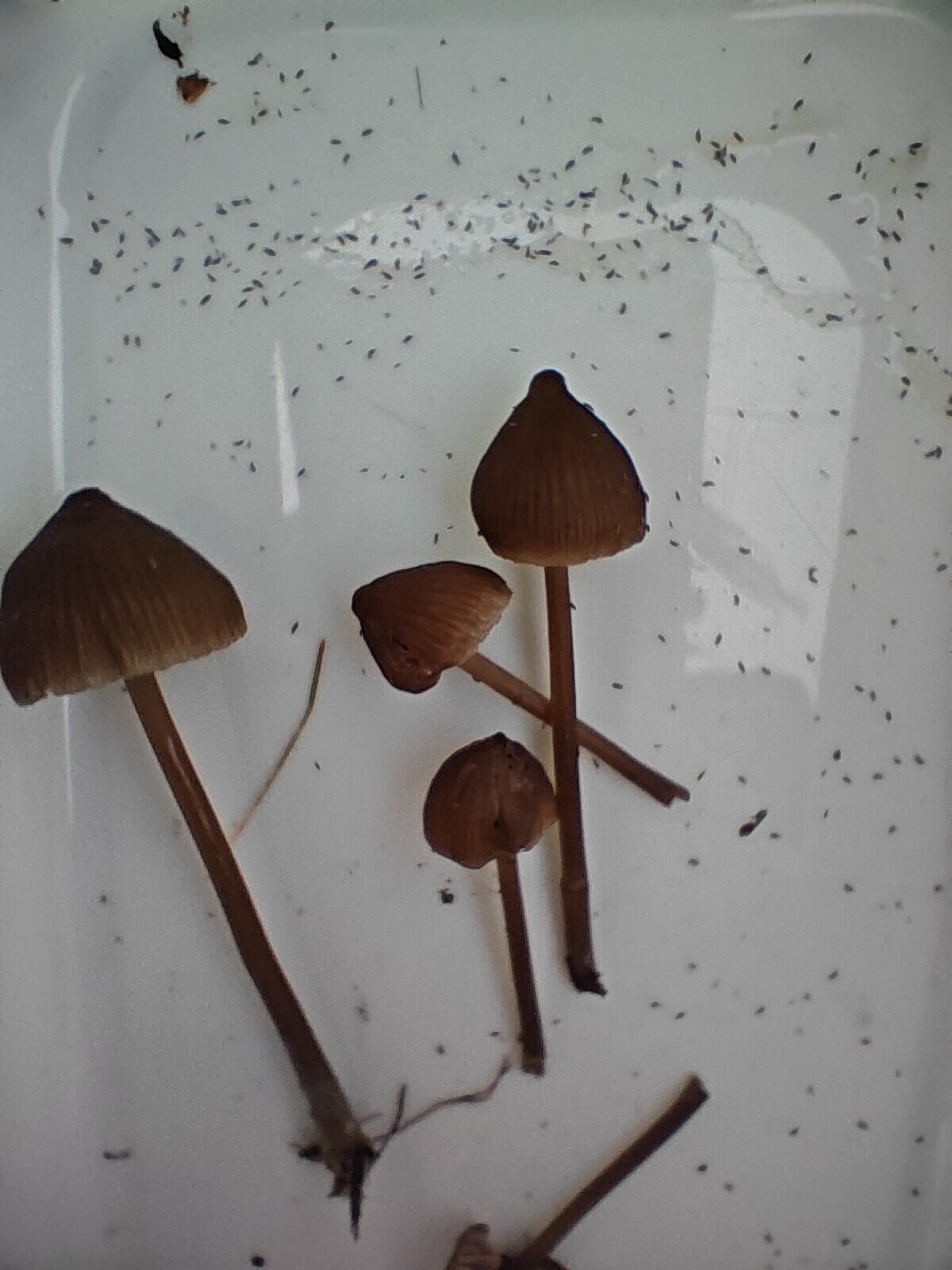 Korjaan myös veikkaustani lajista tarkemman tutkiskelun jälkeen; epäilen mahdollisesti olevan jokin psathyrella- suvun jäsen (haprakas). Joku laaja-alaisemmin eri lajeja tunteva kertokoon tarkemmin sillä itse olen perehtynyt pääasiassa ruokasieniin ja erityisesti psykoaktiivisiin lajeihin ja niiden lähisukulaisiin.