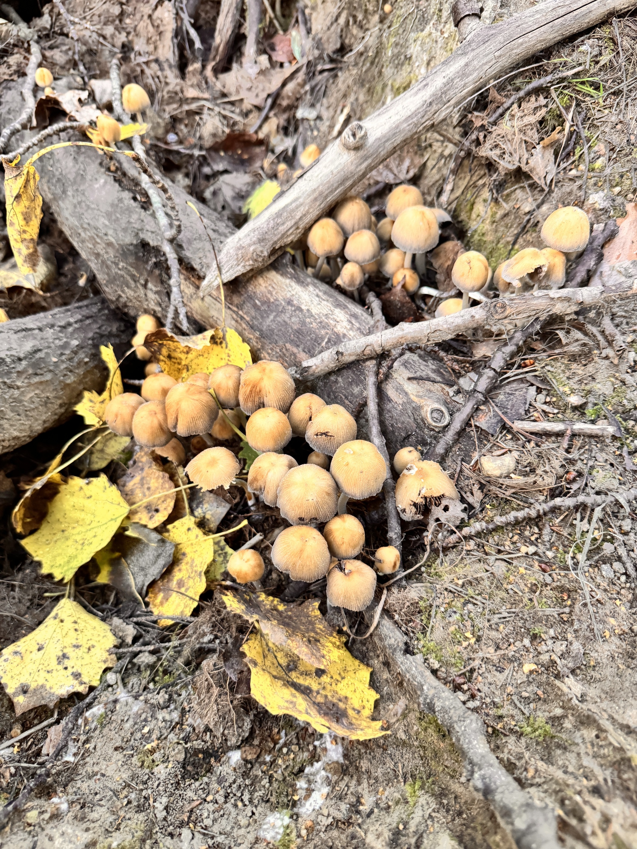 @TapsaM Kiillemustesieniäryhmän sieniä (Coprinellus micaceus). Väärä ympäristö kirjohelttoja ajatellen.