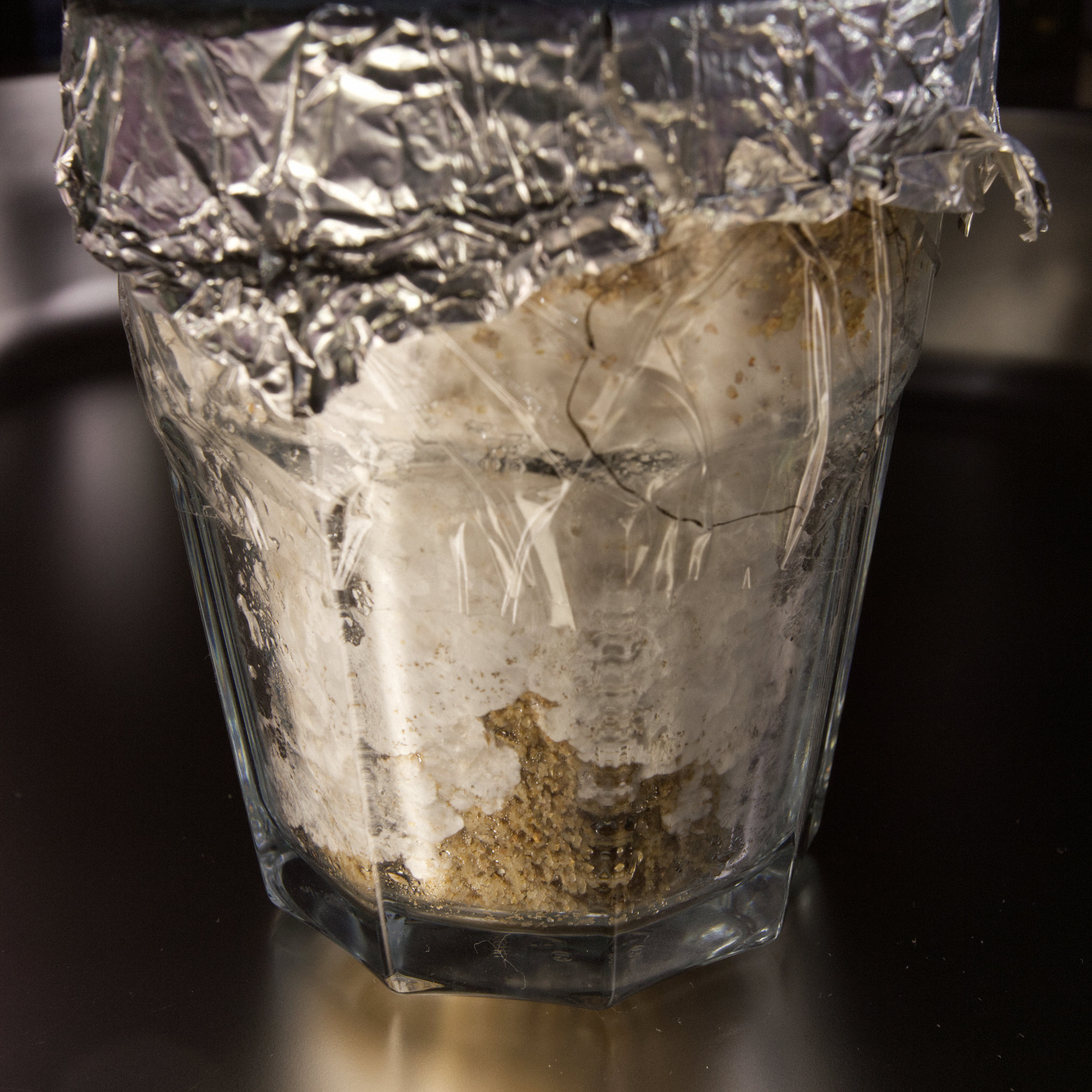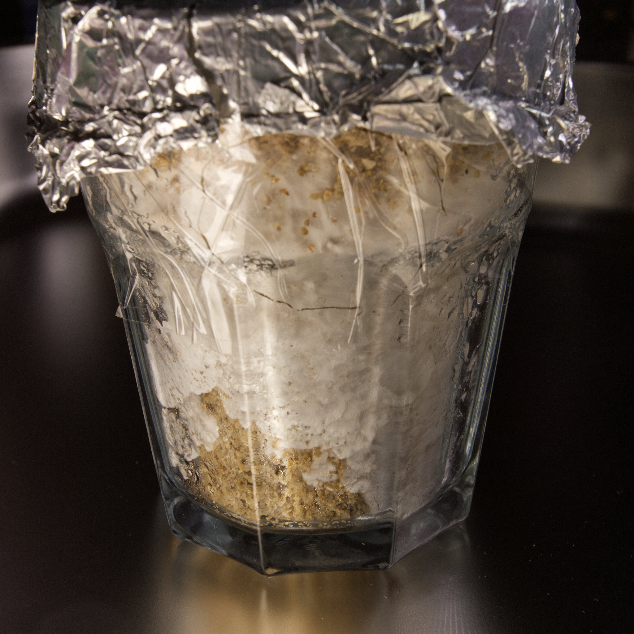 Lämpötila on 24 celsiusta tuossa kakkujen läheisyydessä. Otin nyt päällimmäisen folion pois kaikista kakuista, kun tuntuu että nuo jotka ovat lähteneet kerryttämään rihmastoa, ovat hidastaneet kolonalisoitumistaan.