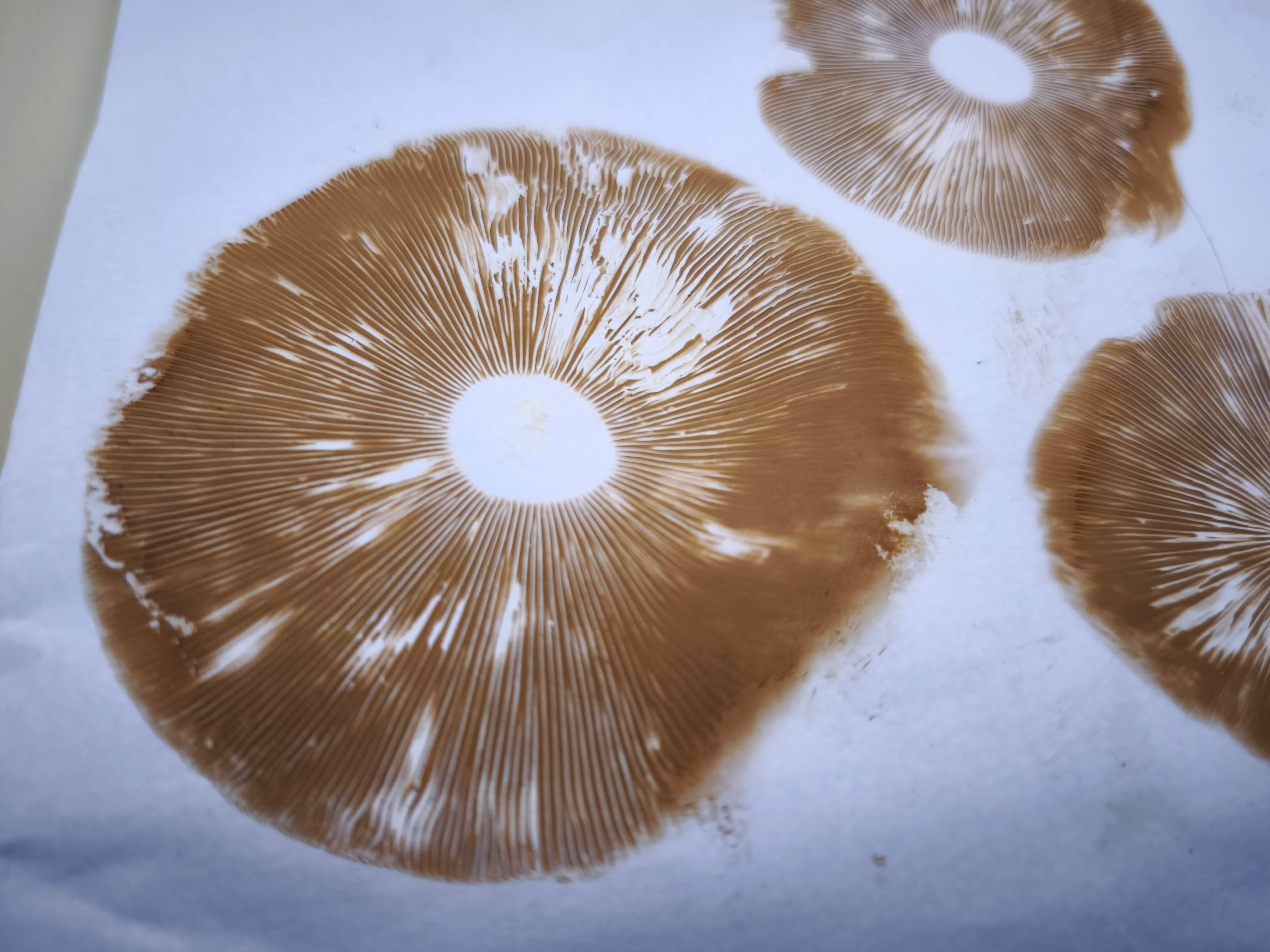 Tässä veljen lähettämiä kuvia, sattuukohan olemaan pajulahorusokas? Kuvaa altapäin hänellä ei nyt ole, mutta hän sanoo että ne näyttivät samoilta kuin foorumin kuvat. Hän tunnisti kanelin näköisen itiökuvan perusteella tappavan myrkylliseksi, mutta minusta se näyttää punertavalta, mikä voi tarkoittaa pajulahorusokasta. Kasvupaikka on Lapissa.