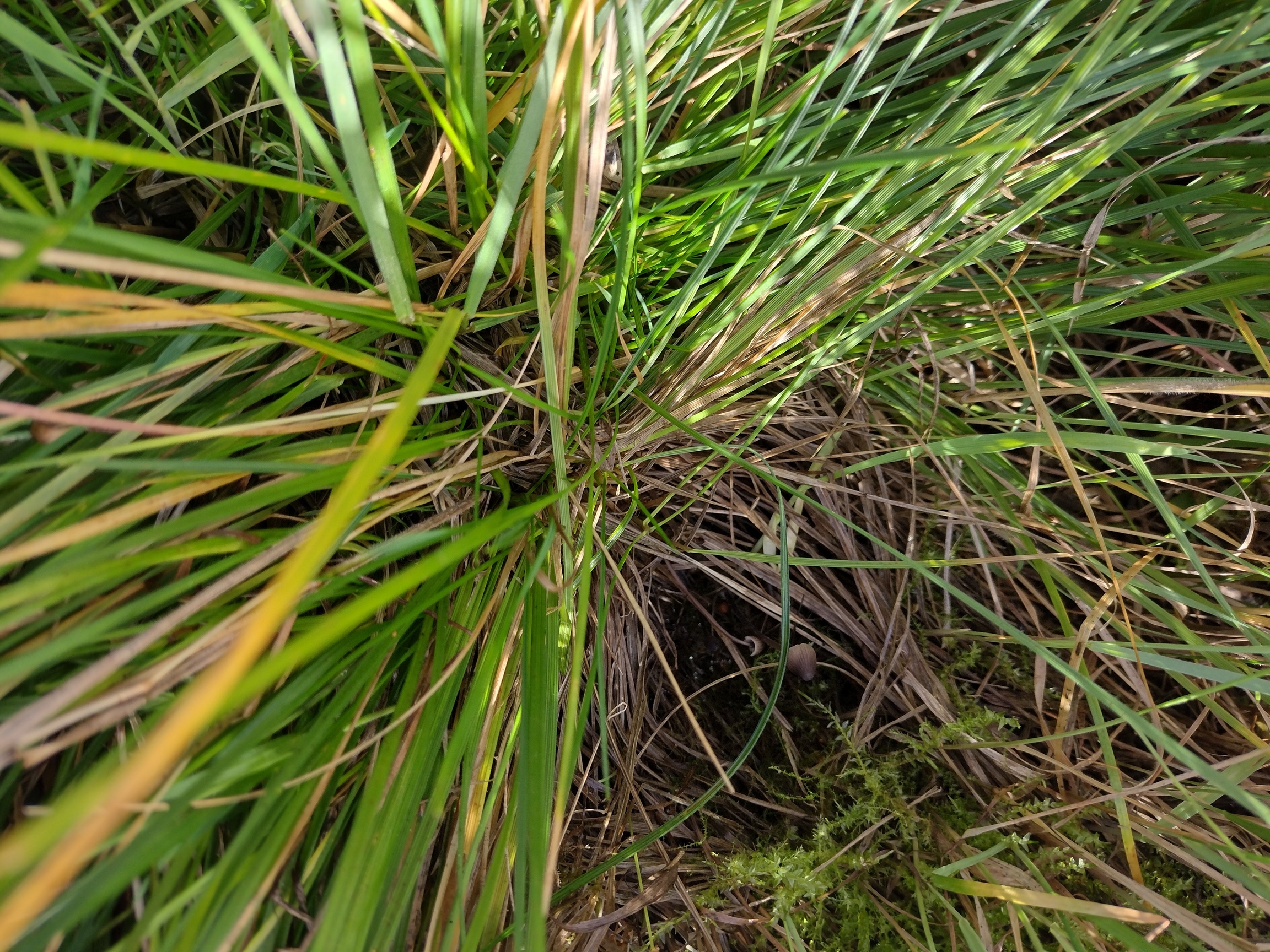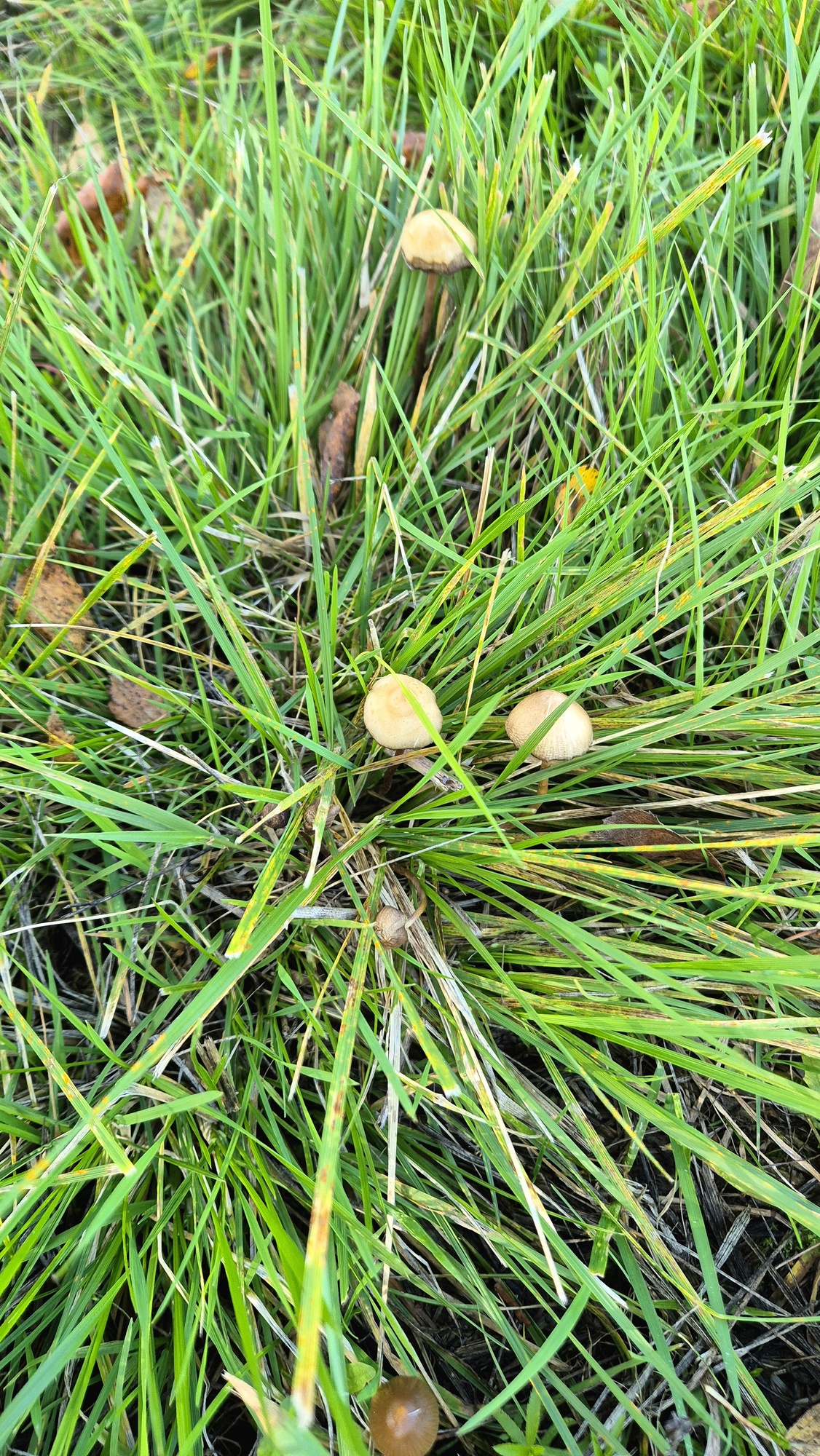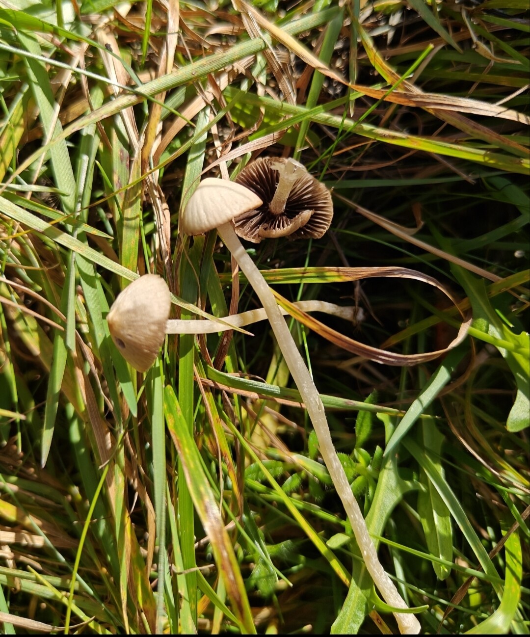 Mutta nurmikkoinen niittypolun syvenevässä kosteassa kohdassa, paljon nurmilauhaa ympärillä. Pidempi sieni n. 6cm pitkä. Tokassa kuvassa väritys kosteana.