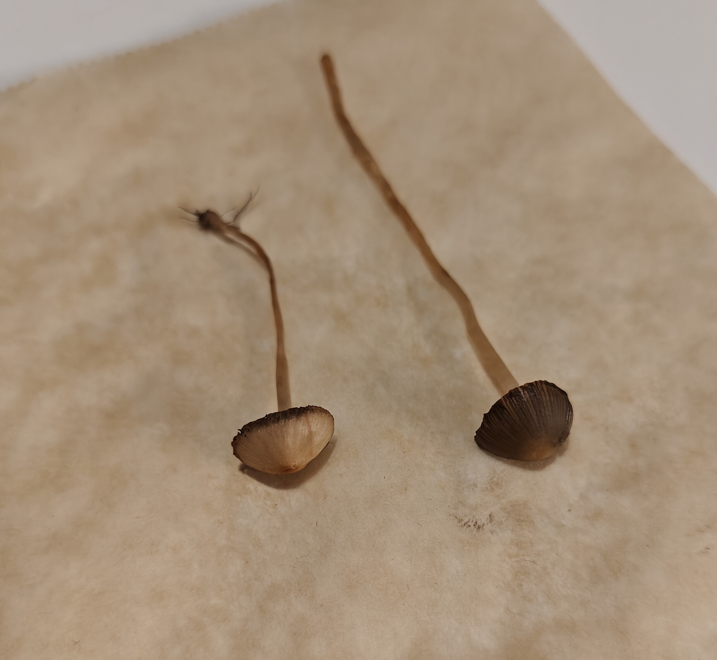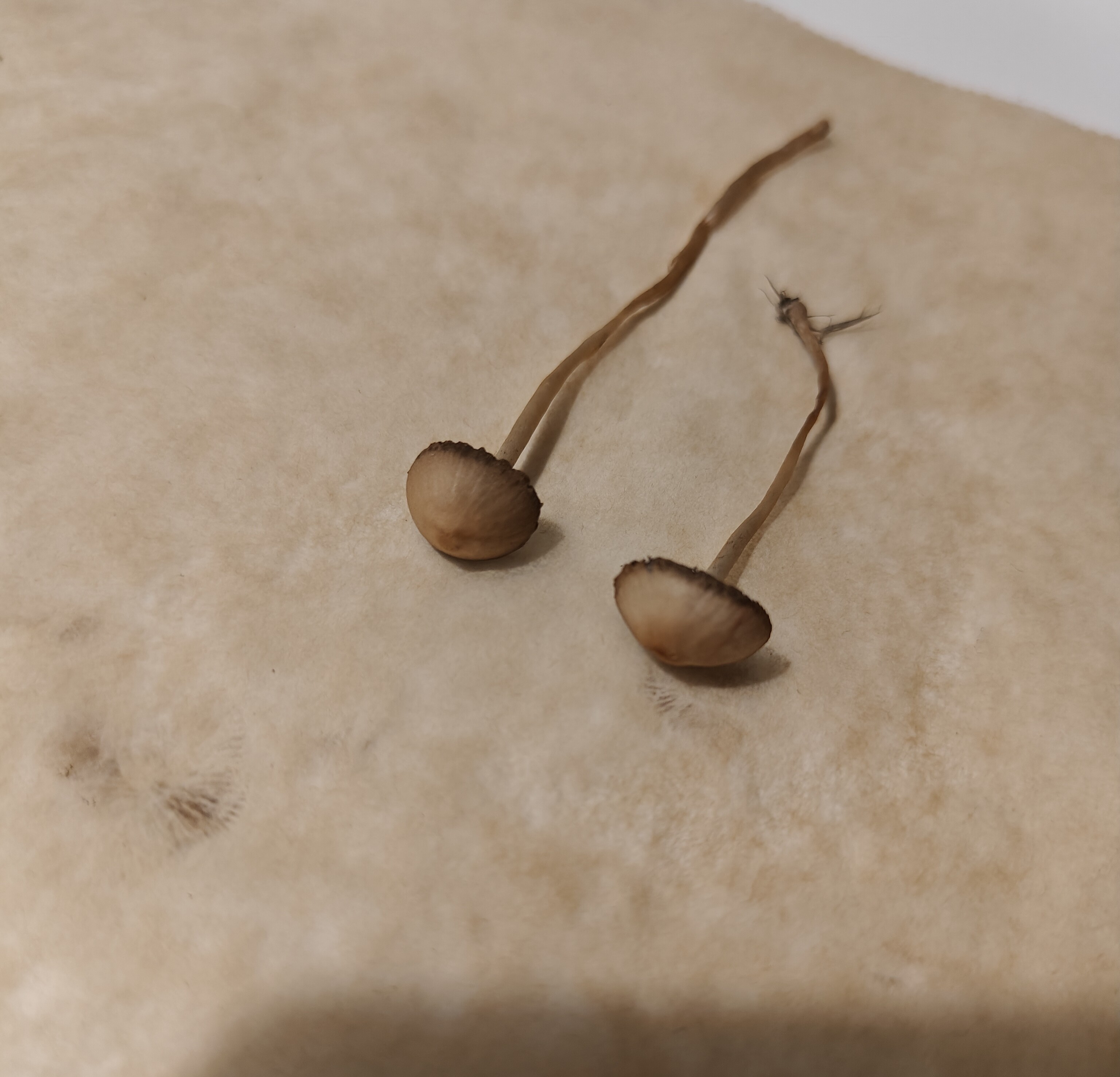 @kalja Sienet eivät muutu toiveajattelulla suippumadonlakeiksi. Löytämäsi sienet ovat haprakkaita (Psathyrella) ja tarkempaa lajimääritystä on vaikea/mahdoton antaa sienten ollessa kuivavärityksessään, eikä tuo kasteleminenkaan auta koska noita pieniä haprakaslajeja on useita samannäköisiä.