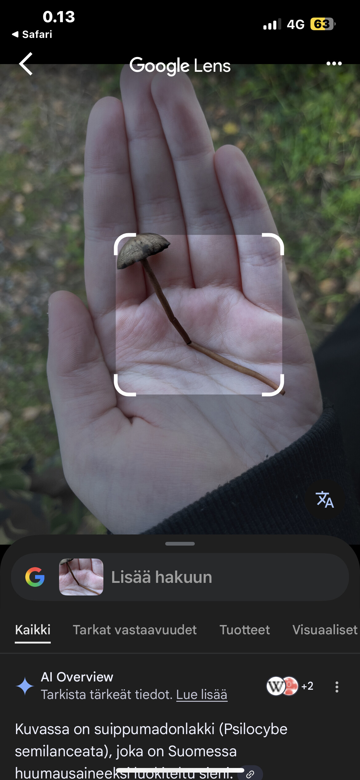 Vähän on huonot kuvat. Näköä on kuitenkin, joten suosittelen menemään samaan paikkaan uudestaan ja ottamaan paremmat kuvat luonnossa vähän joka puolelta sientä.