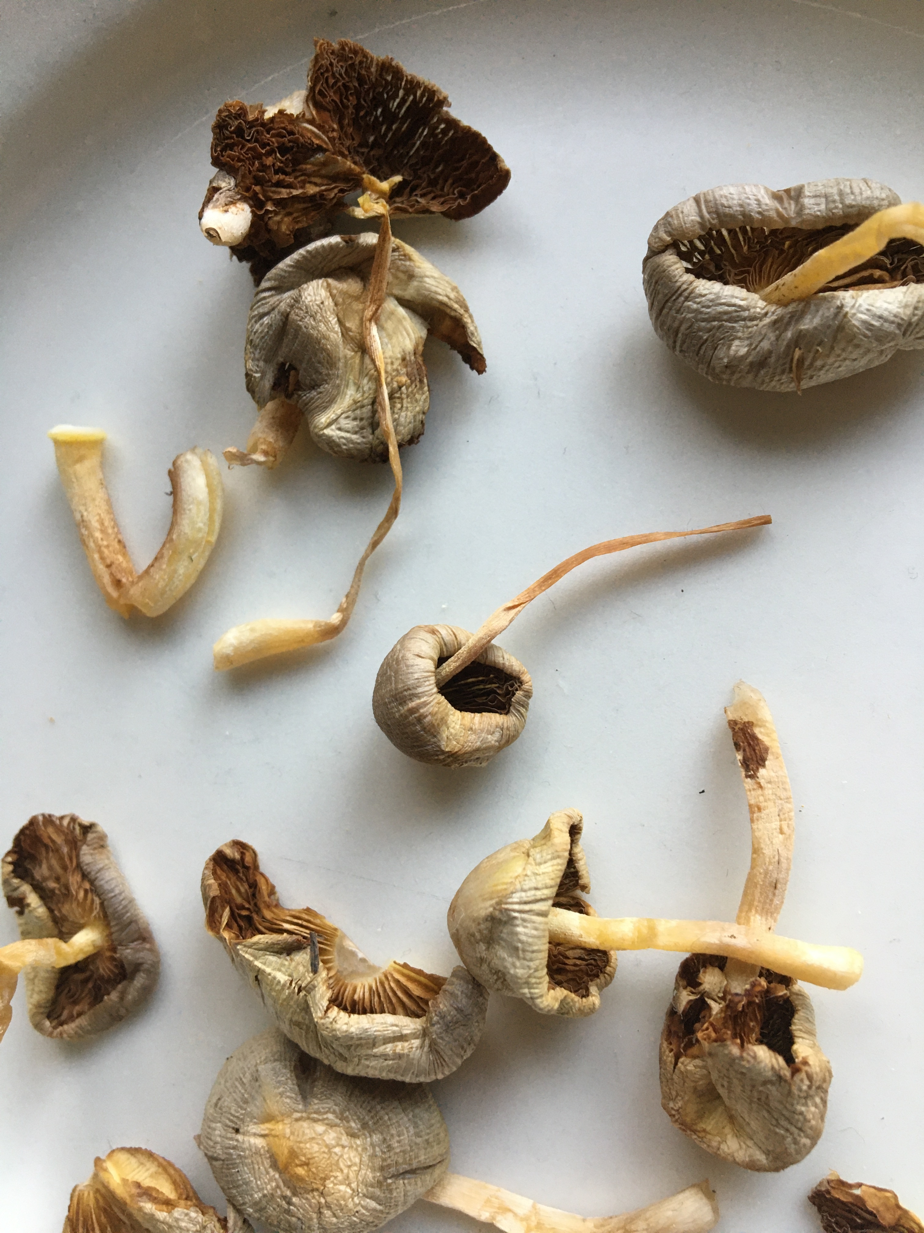 @Pulpo tuskin osaa kukaan tunnistaa litistyneitä kuivia sieniä, mutta suippiksia nuo eivät ole ihan jo pelkän itiöiden värin perusteella.