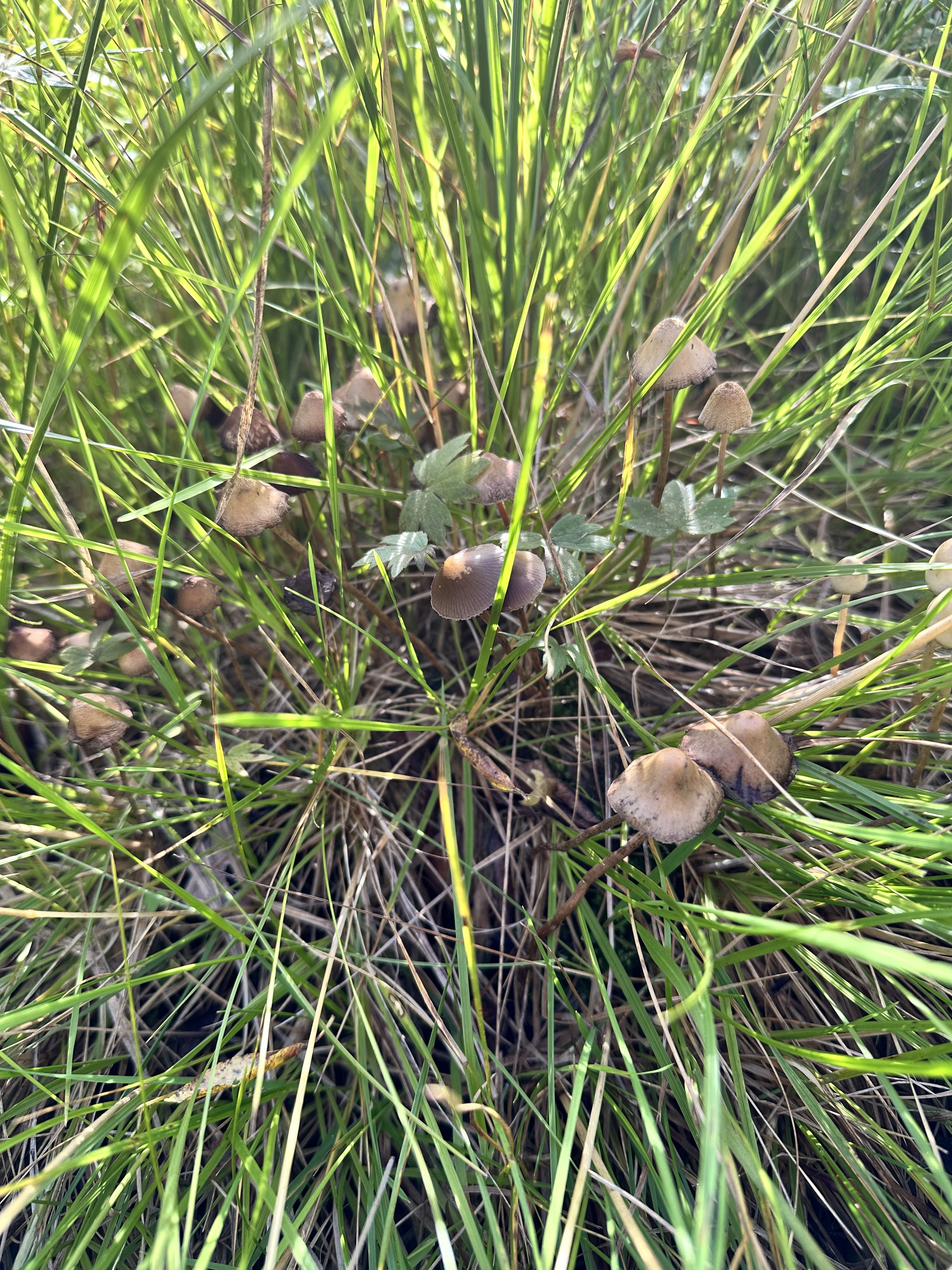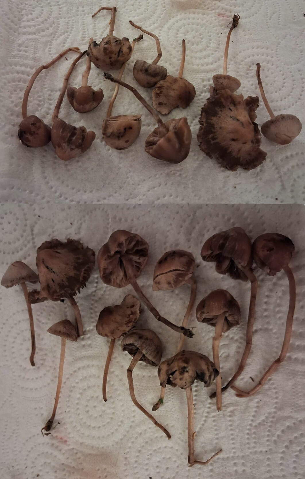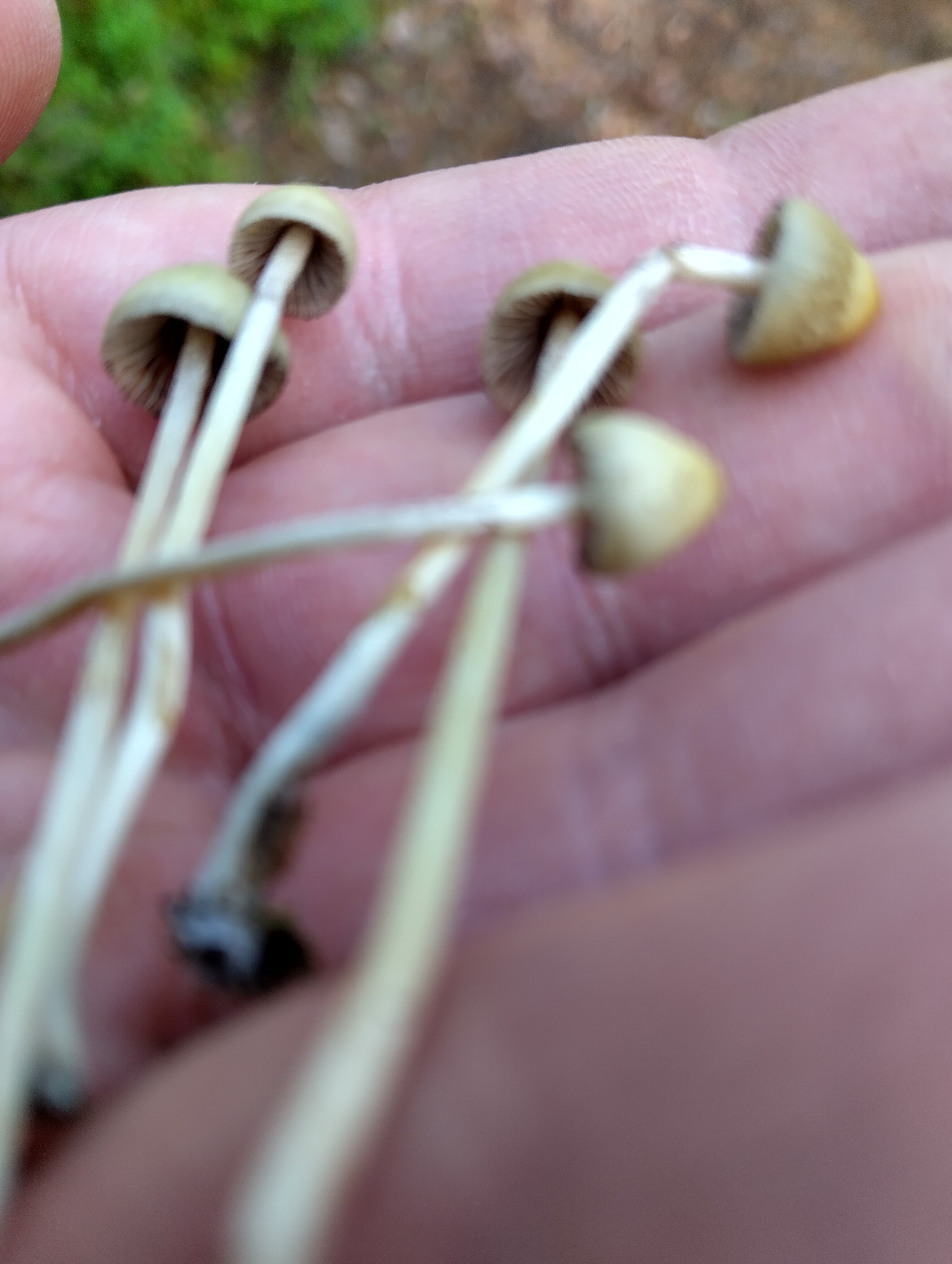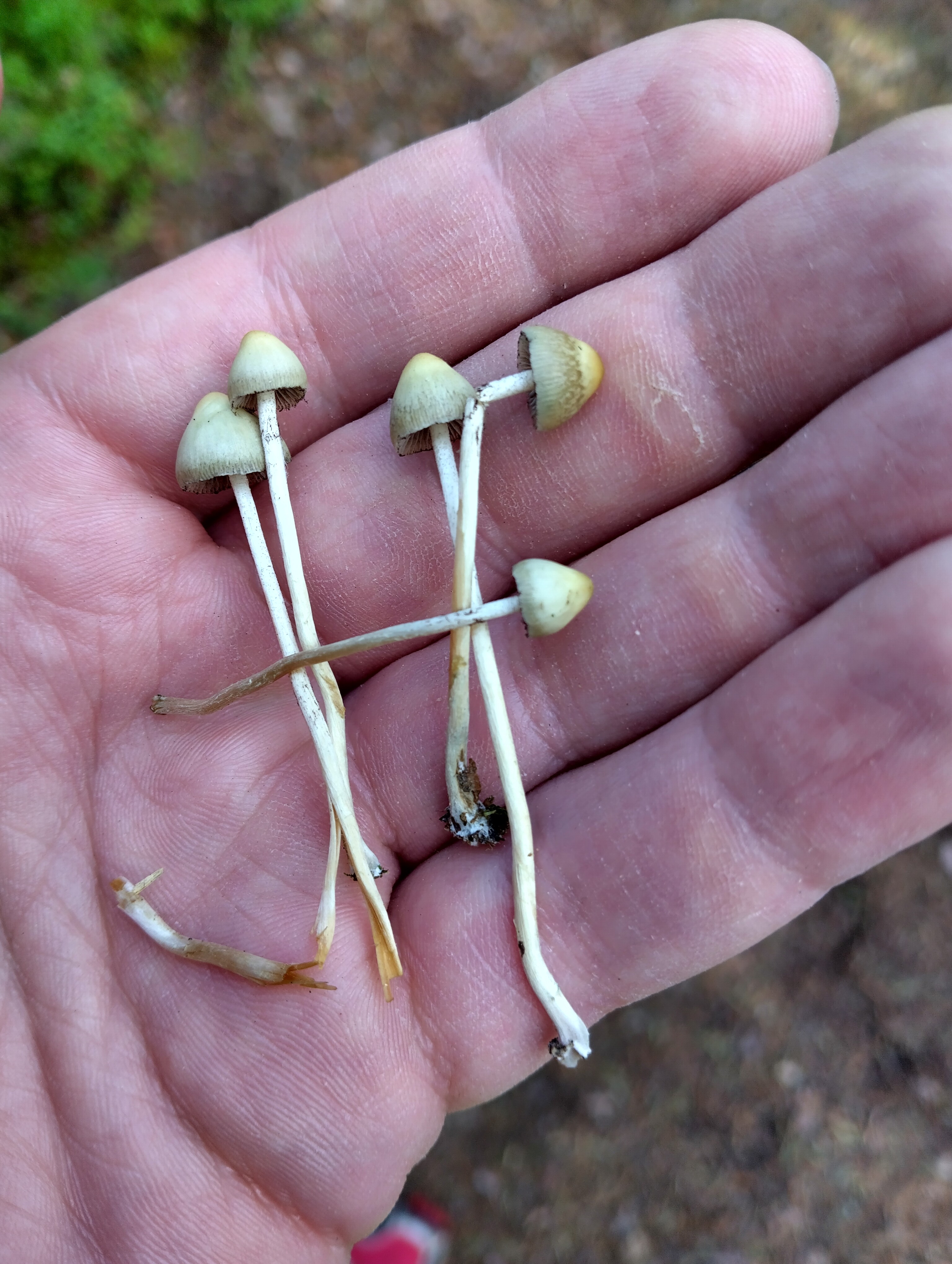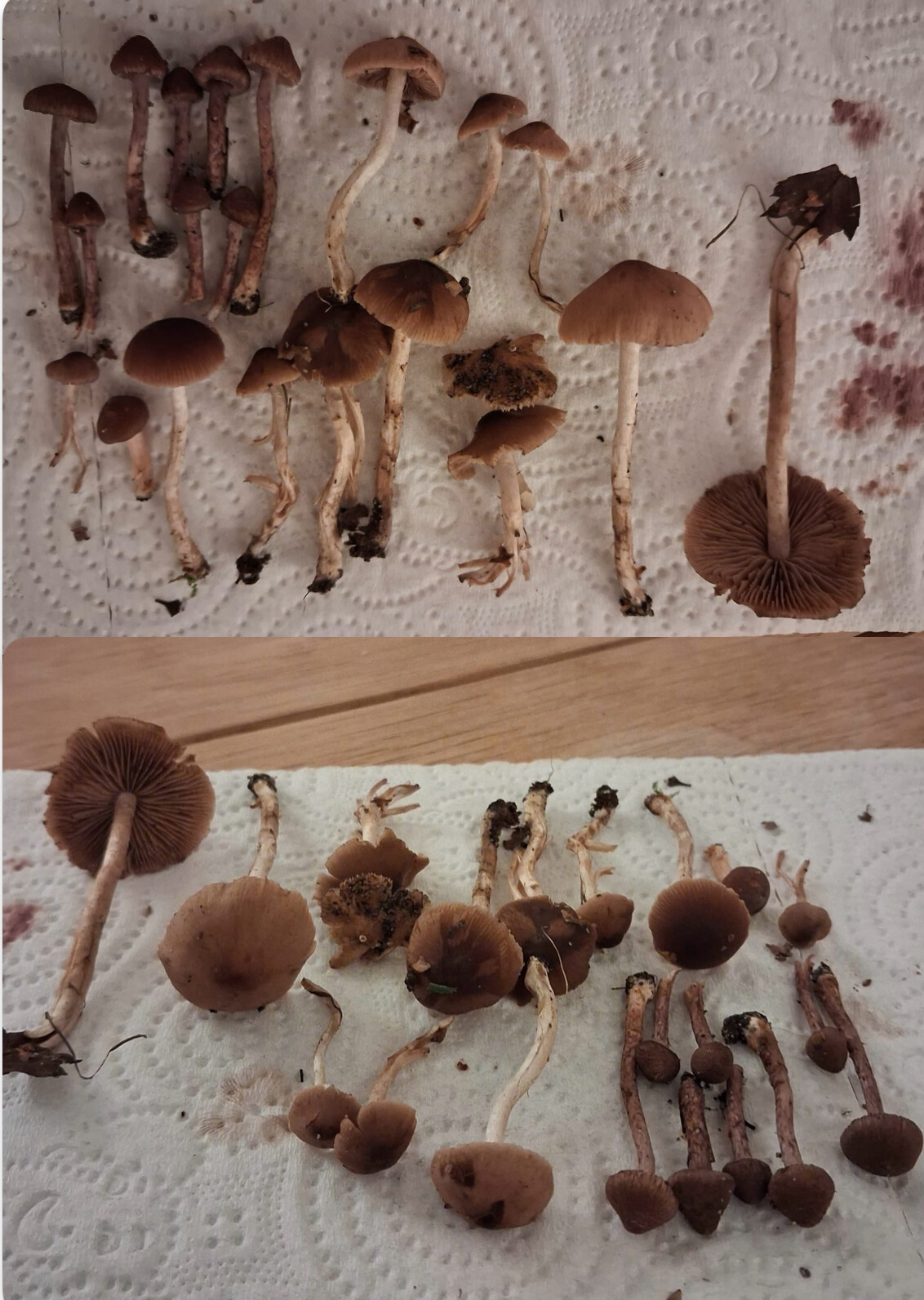 @Kuvailija Ei sinnepäinkään. Isommat sienet paria eri lajia risakkaita (Inocybe) ja erittäin suurella todennäköisyydellä myrkyllisiä sisältäen muskariinia. Kaksi pientä sientä kuupikoita ja luultavasti myös myrkyllisiä.