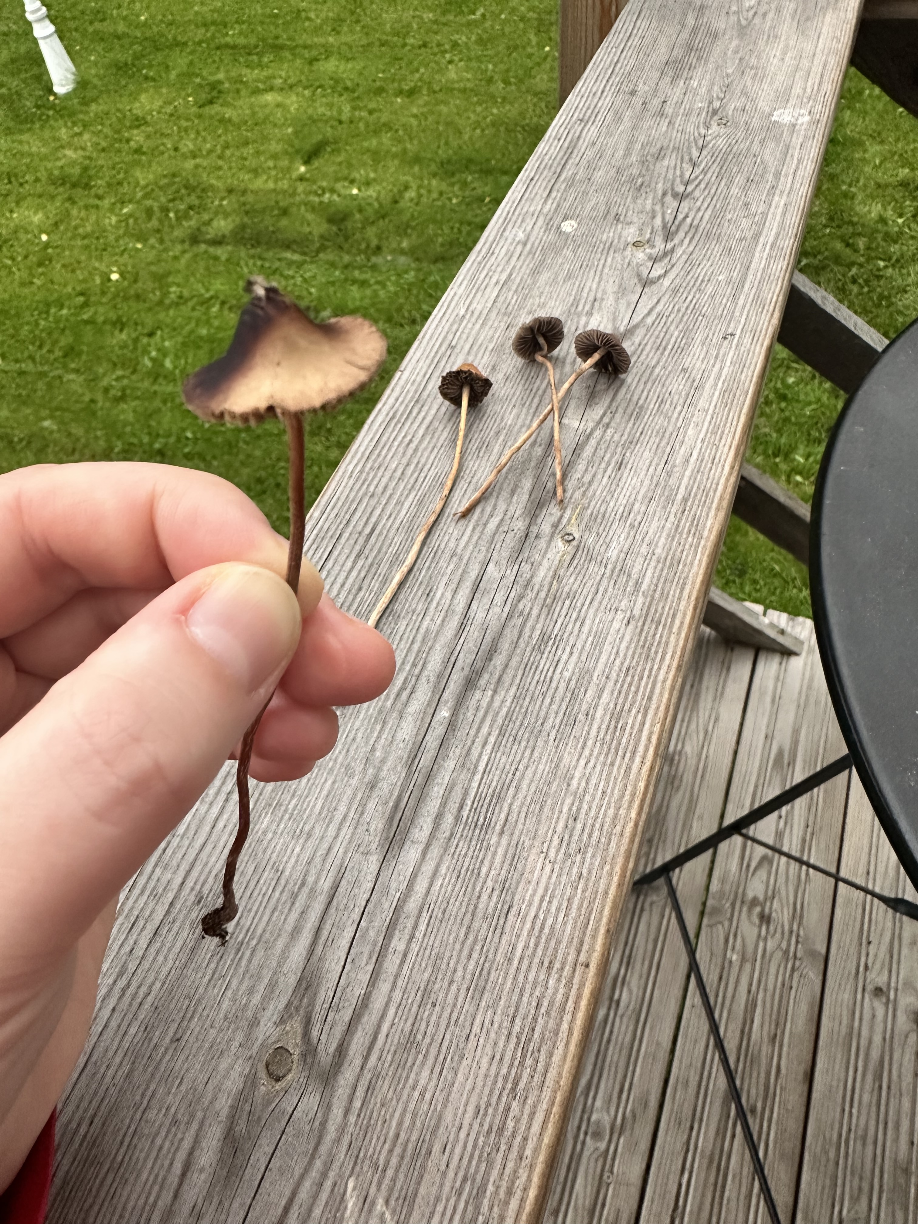 @Sharkfan67 Juu potentiaalisesti reunuskirjoheltta/reunuskirjohelttaryhmän sieniä. Ekan kuvan oikeanpuoleisesta yksilöstä en ole varma, koska jalan tekstuuri näyttää erilaiselta ja kuvat vähän vajavaisia. Panaeolus subfirmus (ei suomenkielistä nimeä, eikä tietääkseni psykoaktiivinen laji) lienee myös mahdollinen vaihtoehto. Tuo jälkimmäisen kuvan sieni on kans vähä kyseenalainen, koska vajavaiset kuvat.
