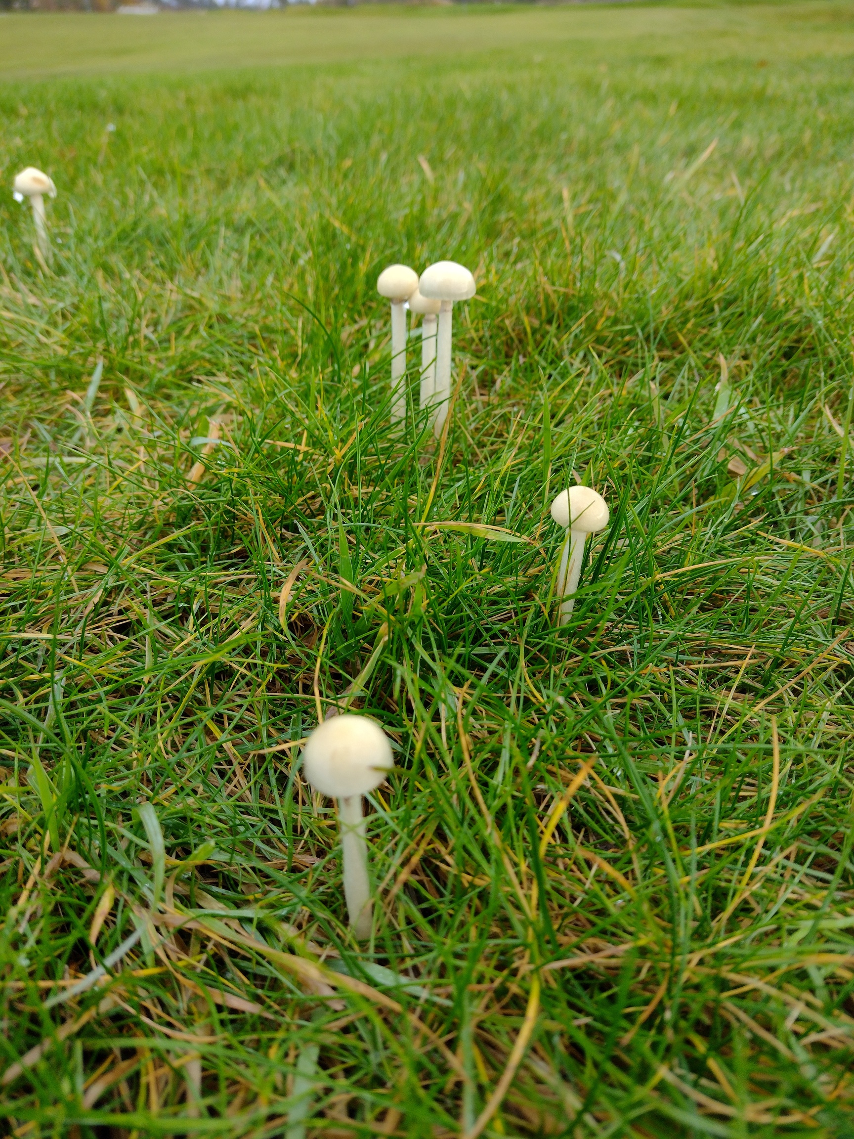 Selvä, kiitokset. Tässä olisi lisää tunnistettavaa. Laitan nyt ekaksi tämän syksyn ensimmäisestä sadosta, pari viikkoa sitten, johon tuttavani sanoi - kaikkien olevan suippiksia. Onkohan sunkin mielestä asia näin? Yhessä kuvassa lähteneet jo kuivamaan, sekä sitten vielä yleisesti paikasta kuvaa - tosiaan tuommoinen kunnon vehreä niitty. Toivottavasti saa kuvista selon! Puhelimessa näkyy ainakin hyvin.