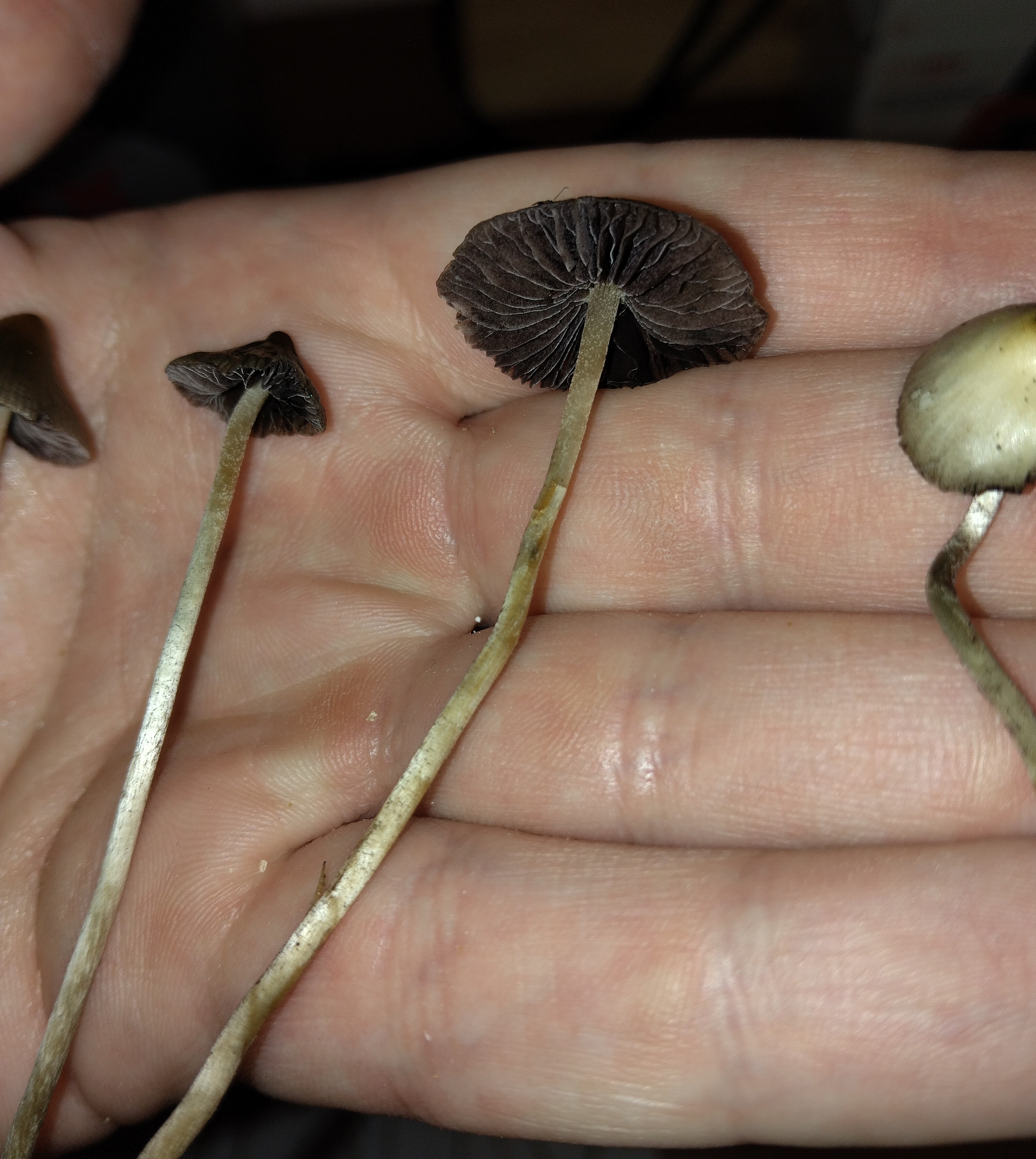 Palasin samalle alueelle ja tällä kertaa sienet olivat hiukan vaihtelevamman mallisia, minkä takia haluaisin vielä saada varmistuksen. Etenkin nuo kädessä olevat, joissa esim yhden lakki on erittäin laakea.