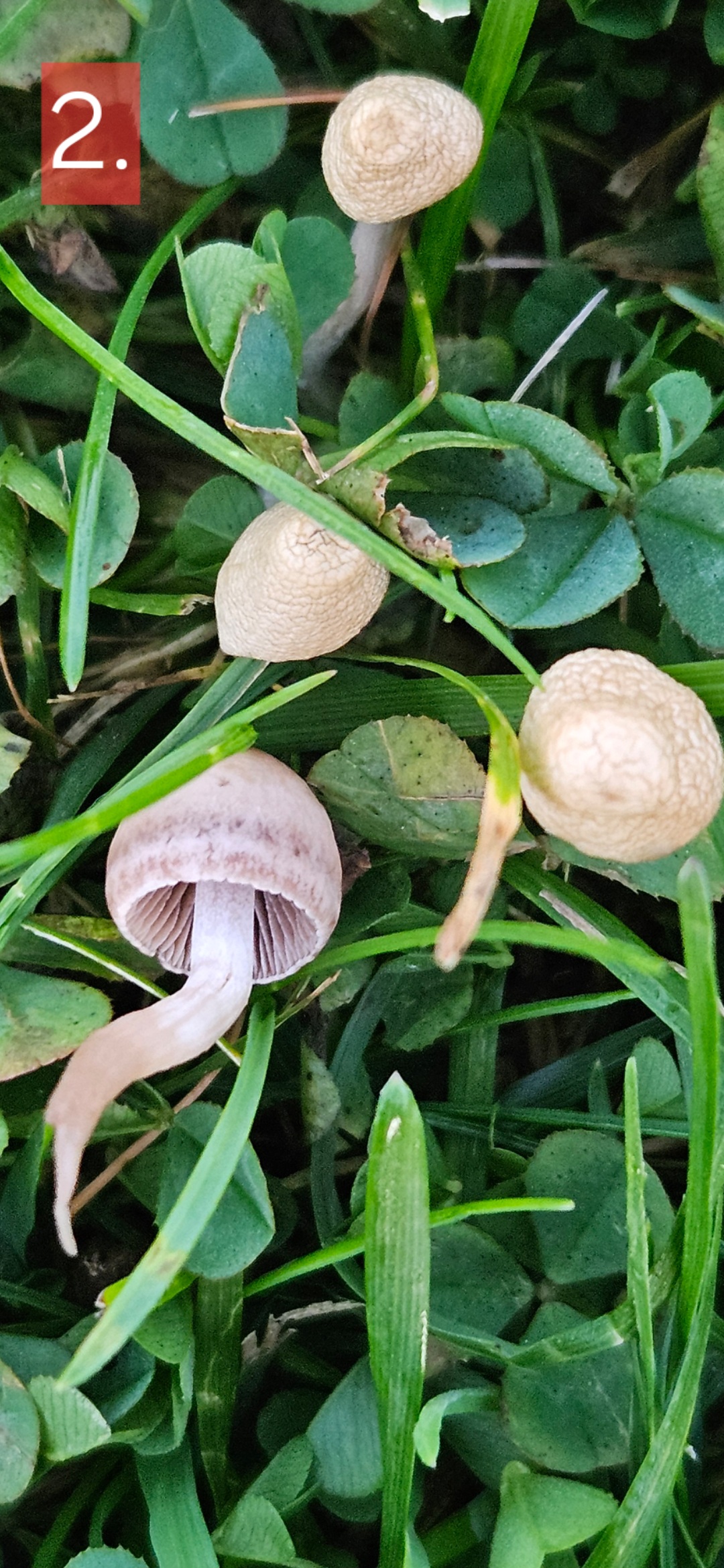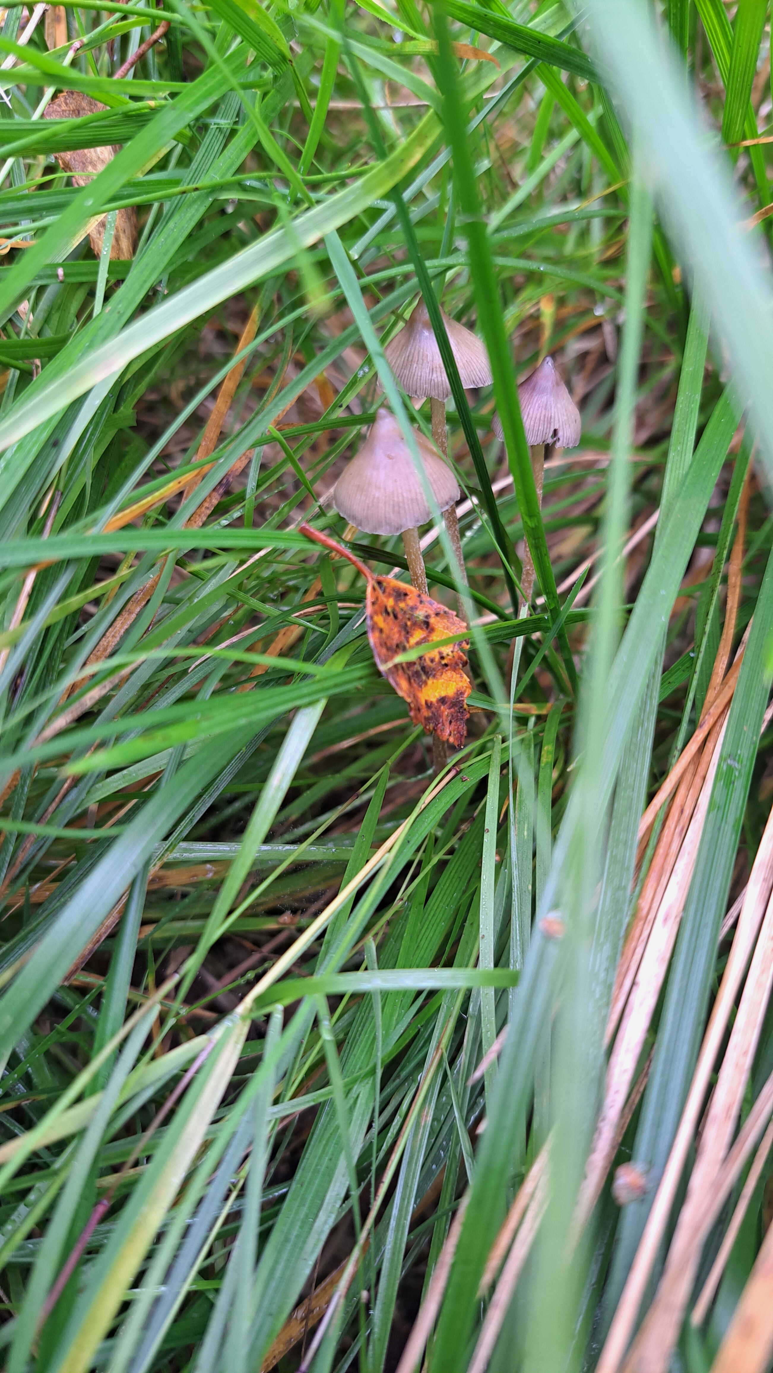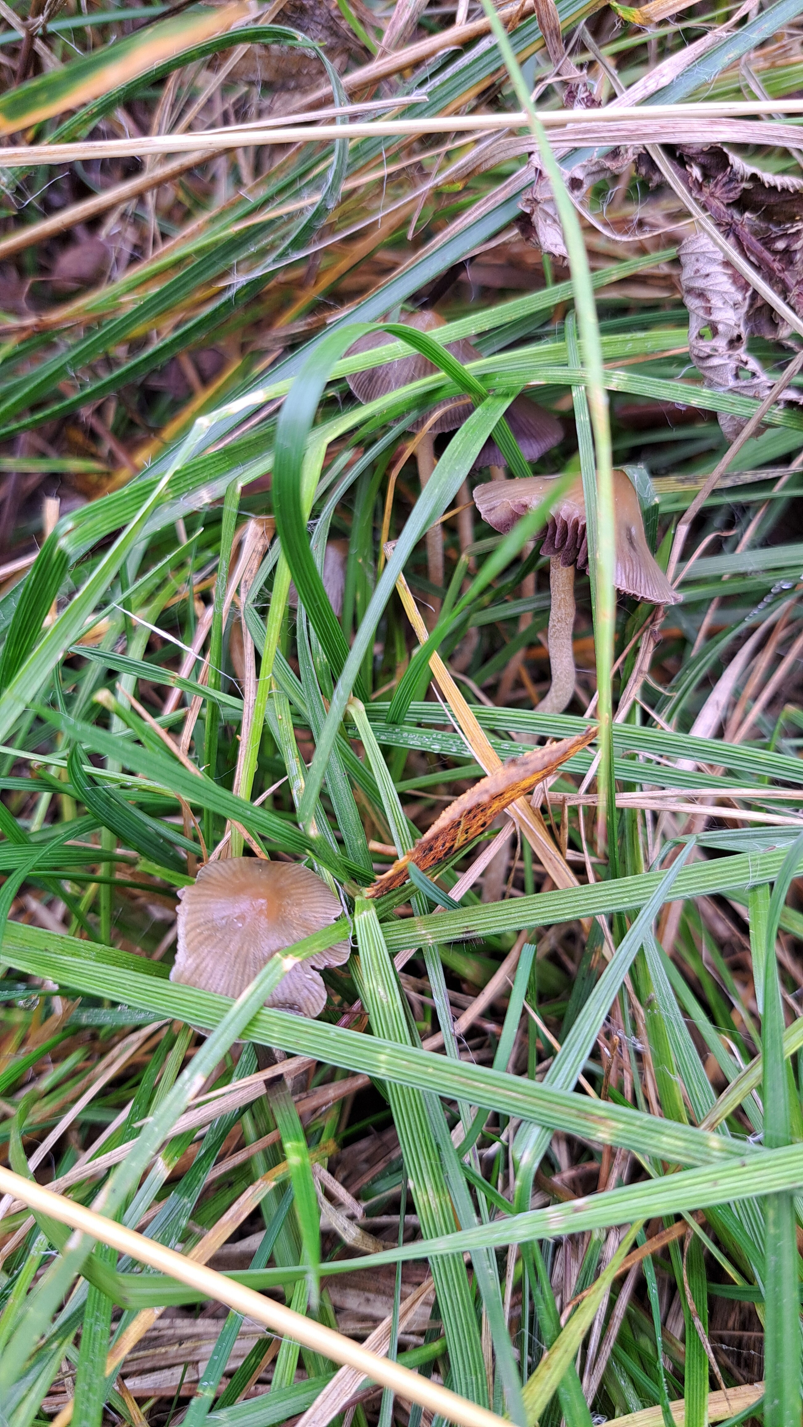 Ekaa kertaa olin kuvaamassa, kauheesti erilaisia vähän samannäköisiä pikkusieniä nurmilauhan joukossa.