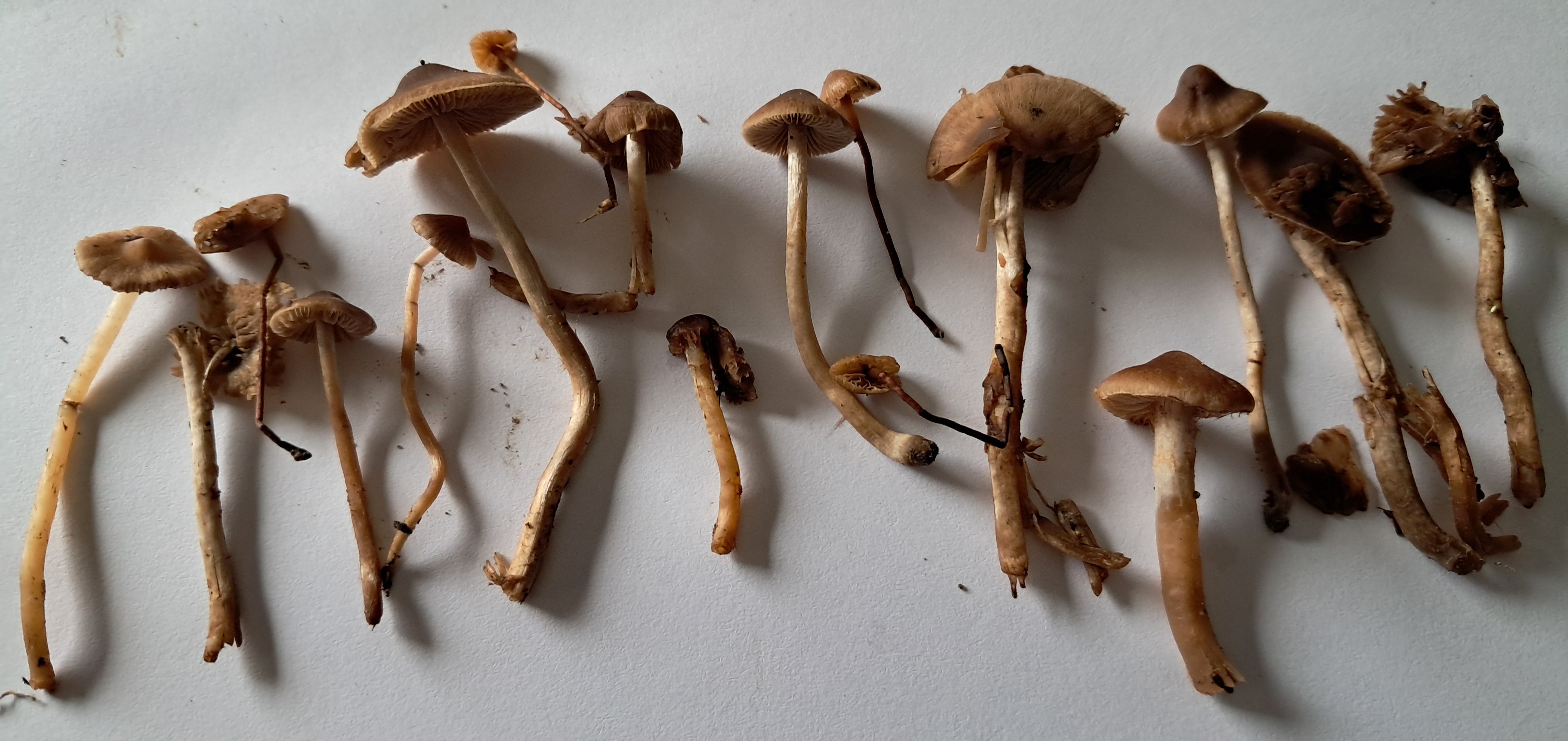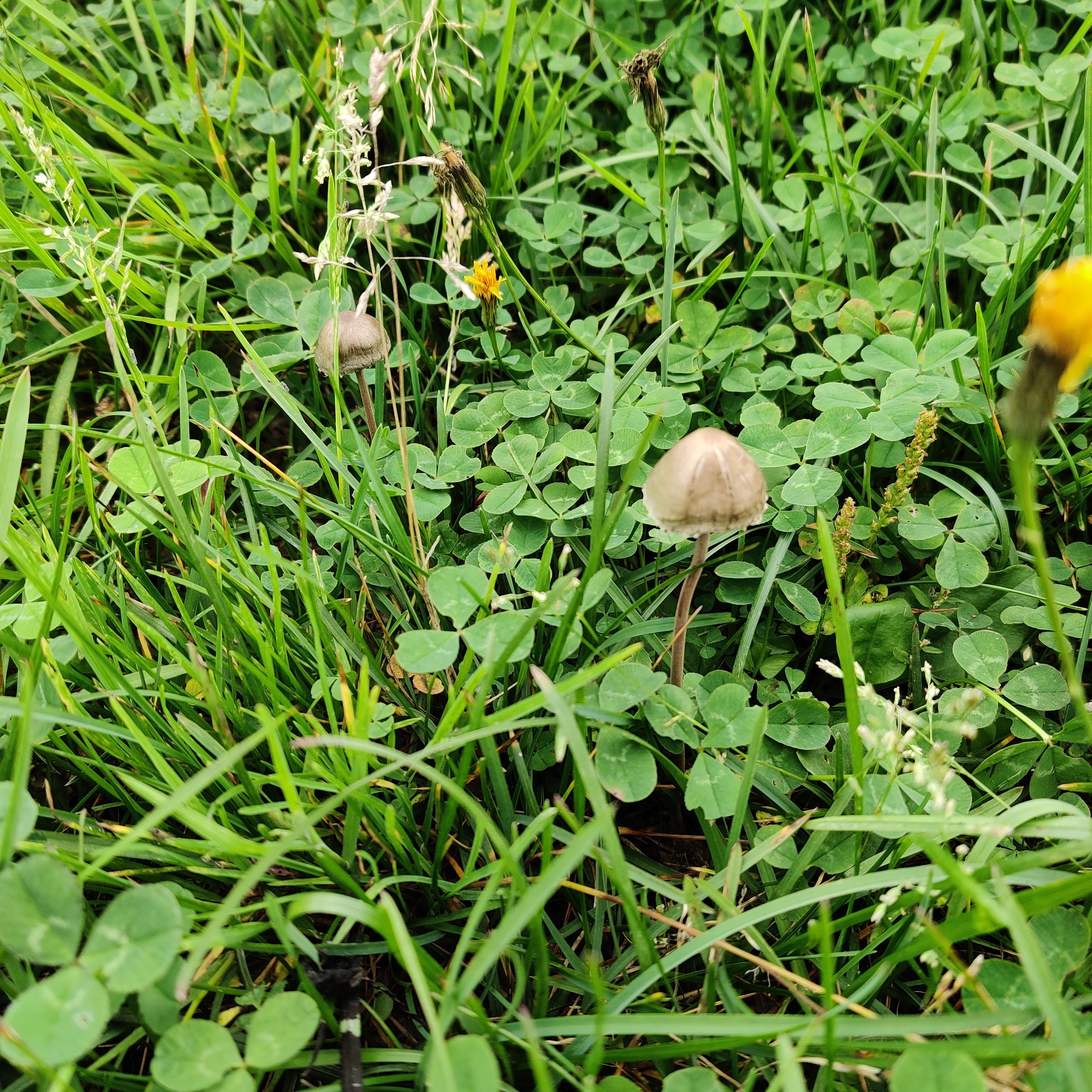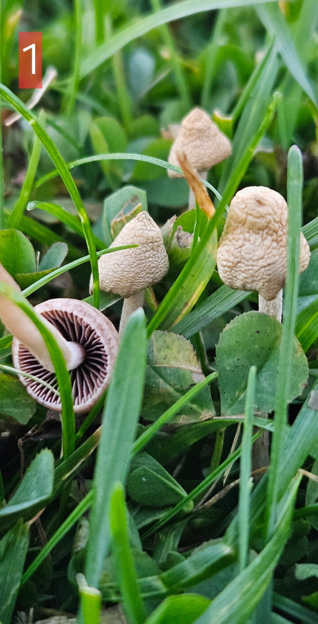 Ekaa kertaa olin kuvaamassa, kauheesti erilaisia vähän samannäköisiä pikkusieniä nurmilauhan joukossa.