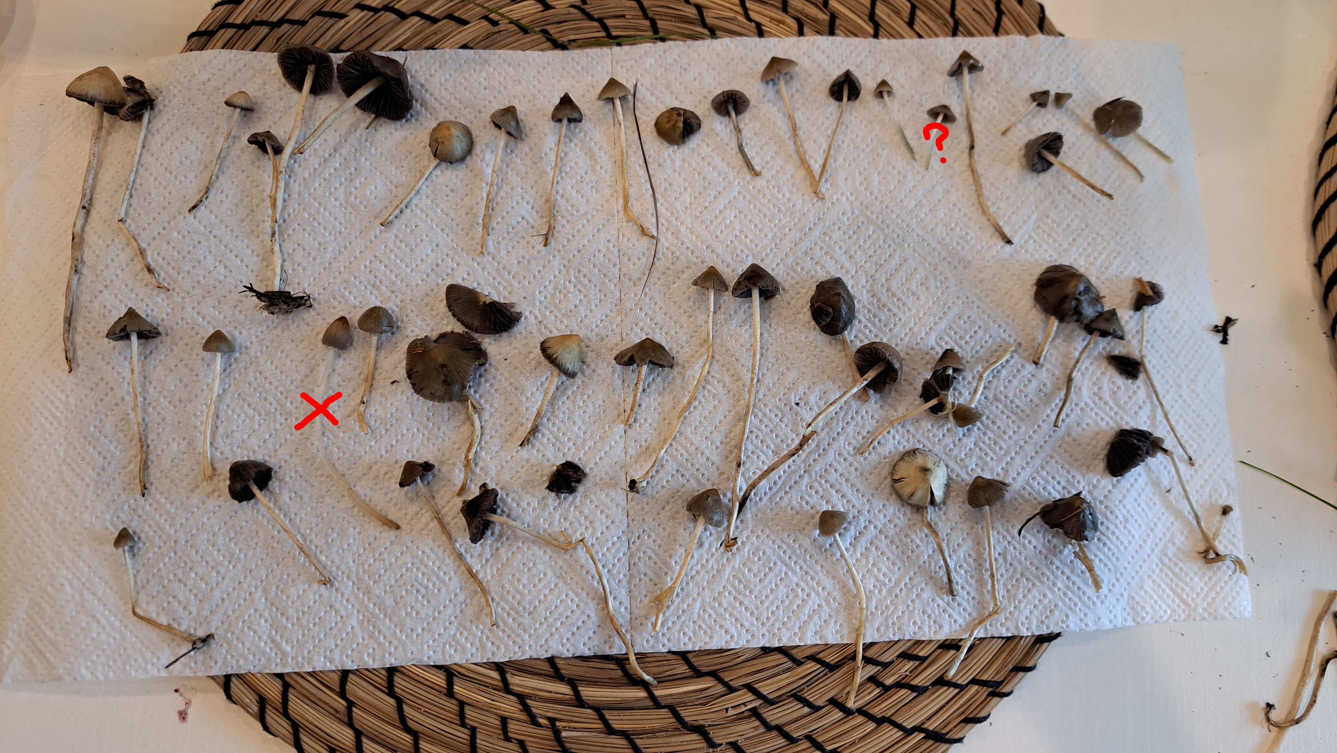 Kiitos tunnistuksesta ja siitä kun oikein merkkasit kuvaan epäilyttävät yksilöt! Joo, ehkä voisi heittää myös noi varrettomat mädän näköiset varmuuden vuoksi pois.