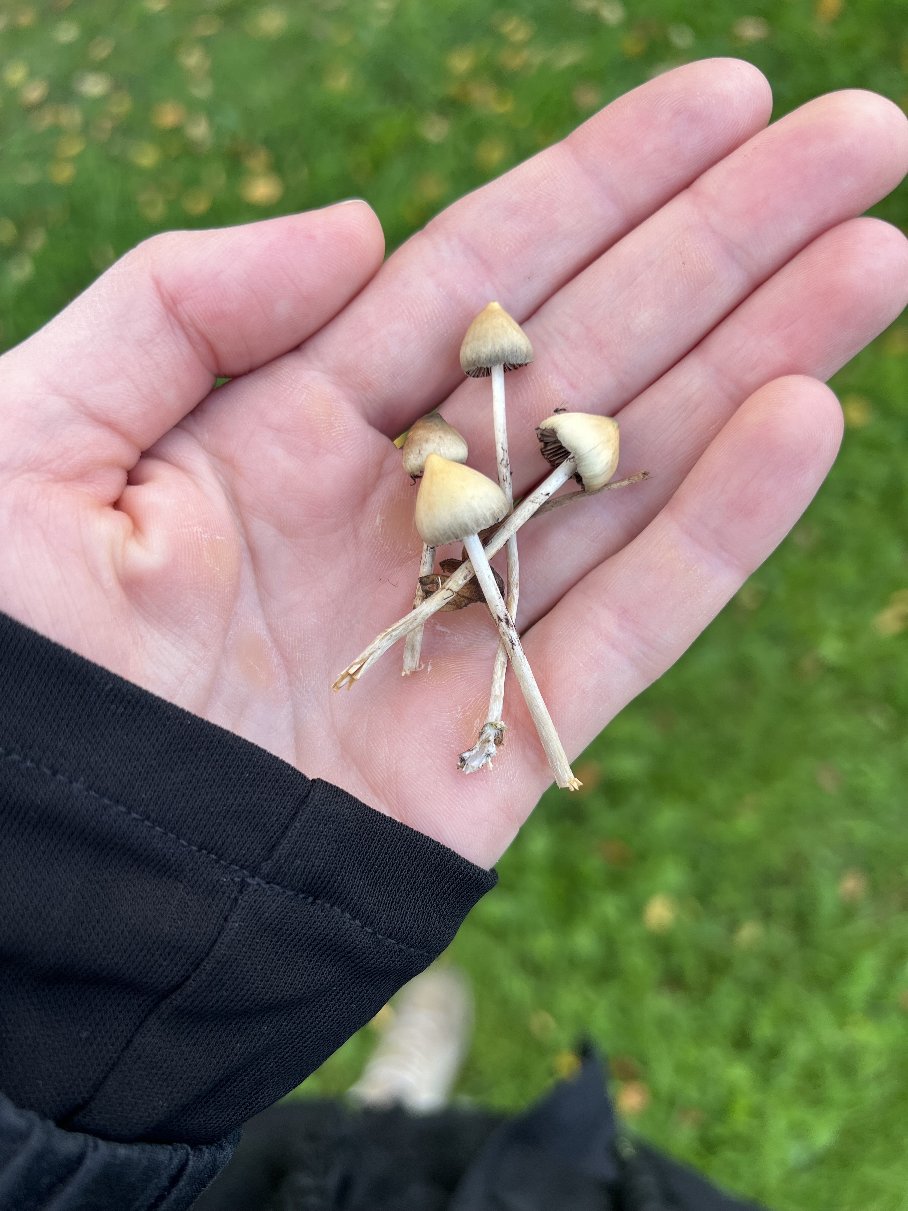 Onkos nää? Löydetty rehevältä nurmikolta. Testasin että läpinäkyvää pintakelmua löytyy. Seuraavalla kerralla luen ohjeet paremmin, otan kuvan noista kasvuympäristössään, ja pistän paperin päälle vähän parempaan järjestykseen.