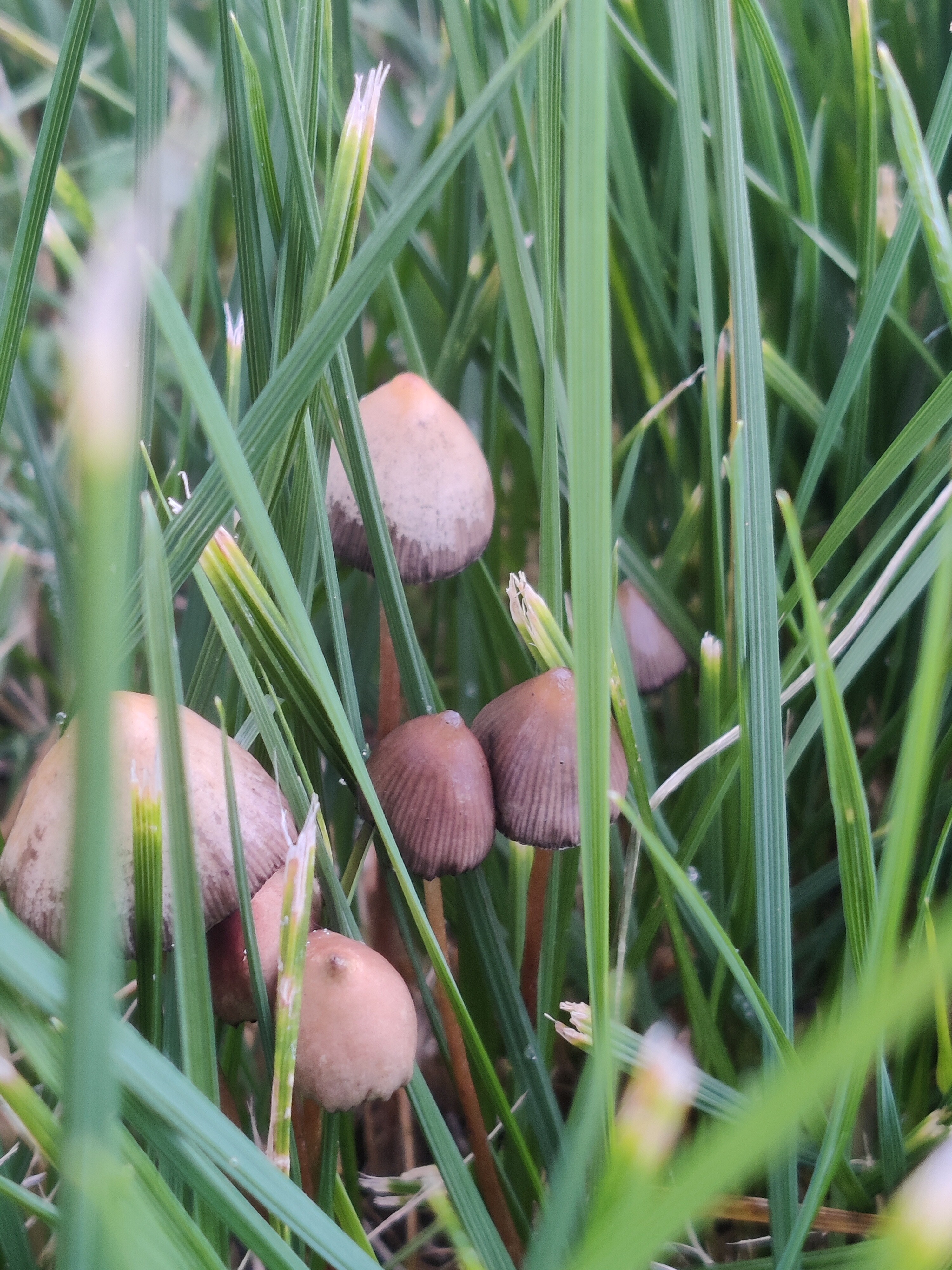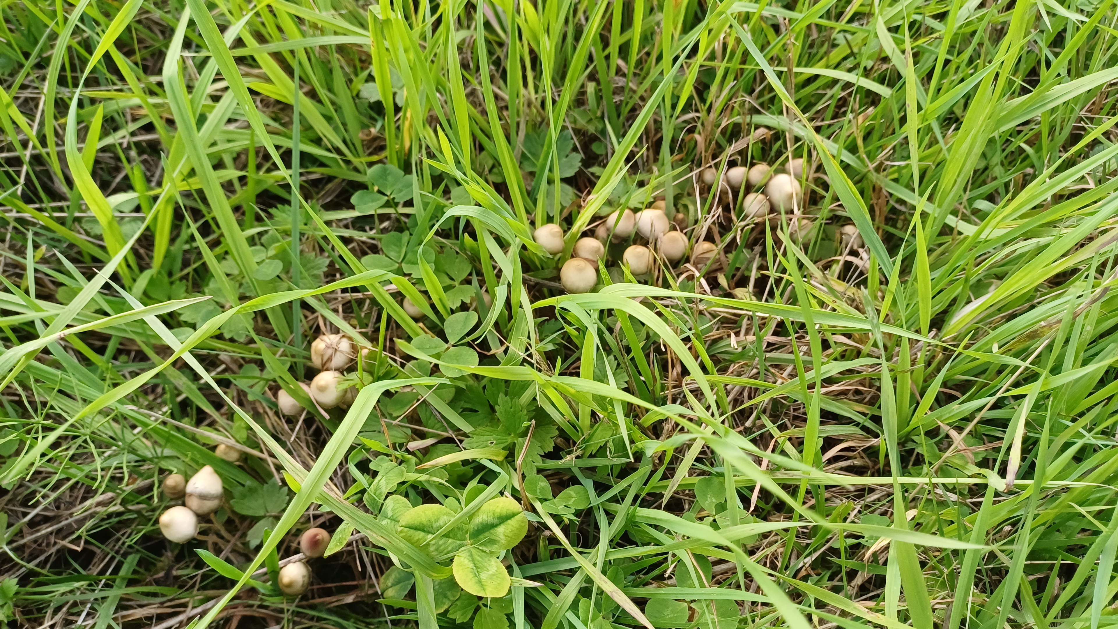 Sateet ja hivenen viileämmät yöt ovat saaneet sienet kasvamaan vauhdilla. Nämä lyhyestä ruohosta golfkentältä.